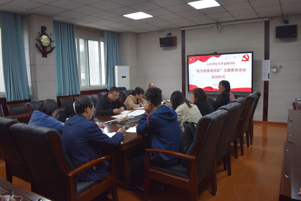 吴红文对主题教育活动提出五点要求。一是要提高政治站位,坚决做到“两个维护”。党员同志要明确当下党史学习教育工作的政治性、严谨性和及时性,切实从思想上同党中央保持一致,保障党史学习教育工作的稳步推进。二是党员干部要认真履职尽责,严格规范支部组织生活。党员干部要发挥好“头雁”作用,强化督促和检查力度,认真履行工作责任,不断规范“三会一课”和党史学习教育活动。三是不断丰富党员组织生活,为建党100周年添彩。“我为党旗添光彩”主题教育将开展党课、讲座、微视频大赛、书法大赛、文艺汇演、主题观影、实践调研等丰富活动,善于利用“学习强国”、“灯塔党建在线”、“甜蜜的事业—金融党务之声”等平台开展线上线下党史学习,进一步激发师生爱党爱国热情。四是开展创先争优活动,为党的事业助力。在党史学习教育工作中不断开展创先争优活动,形成比学赶帮超的良好氛围,教育引导广大师生为党的事业而不懈奋斗。五是发挥模范带头作用,讲好身边的学党史“故事”。善于挖掘先进模范,通过多种渠道大力宣传在党史学习教育工作中涌现出的典型人物和事迹,讲好他们的学党史“故事”。