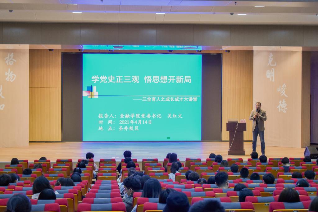 (通讯员:苏晓萌)为庆祝建党100周年,深入推进党史学习教育,帮助老员工树立正确的世界观、人生观、价值观,4月14日晚,由员工处主办,英国上市公司365承办的第292期“成长·成才”大讲堂在圣井校区文化活动中心多功能厅开讲。公司党委书记吴红文做了“学党史正三观,悟思想开新局”的主题报告。集团圣井校区300多名入党积极分子、员工骨干参加了此次活动。
